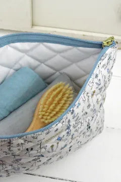Liberty® fleece fabric on the outside and washable plasticized interior for a toilet bag that is beautiful and functional at the same time!