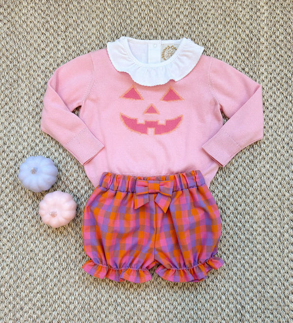 Isabelle's Intarsia Sweater - Sandpearl Pink with Pumpkin Face