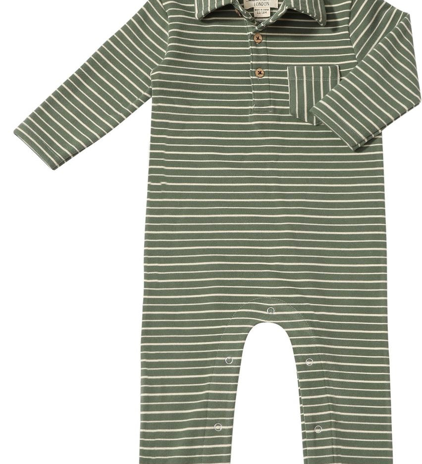 Long Sleeve Polo Romper - Watercress Stripe