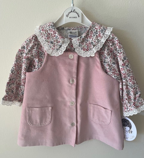 Velvet Jumper with Floral Blouse - Rose