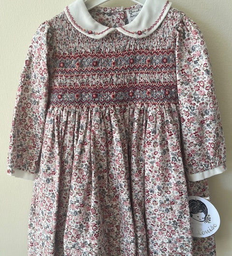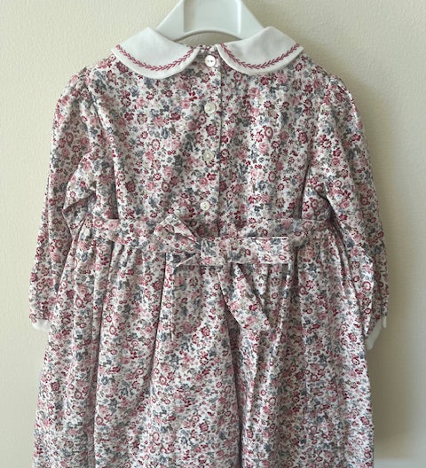Smocked Floral Dress with Collar - Rose