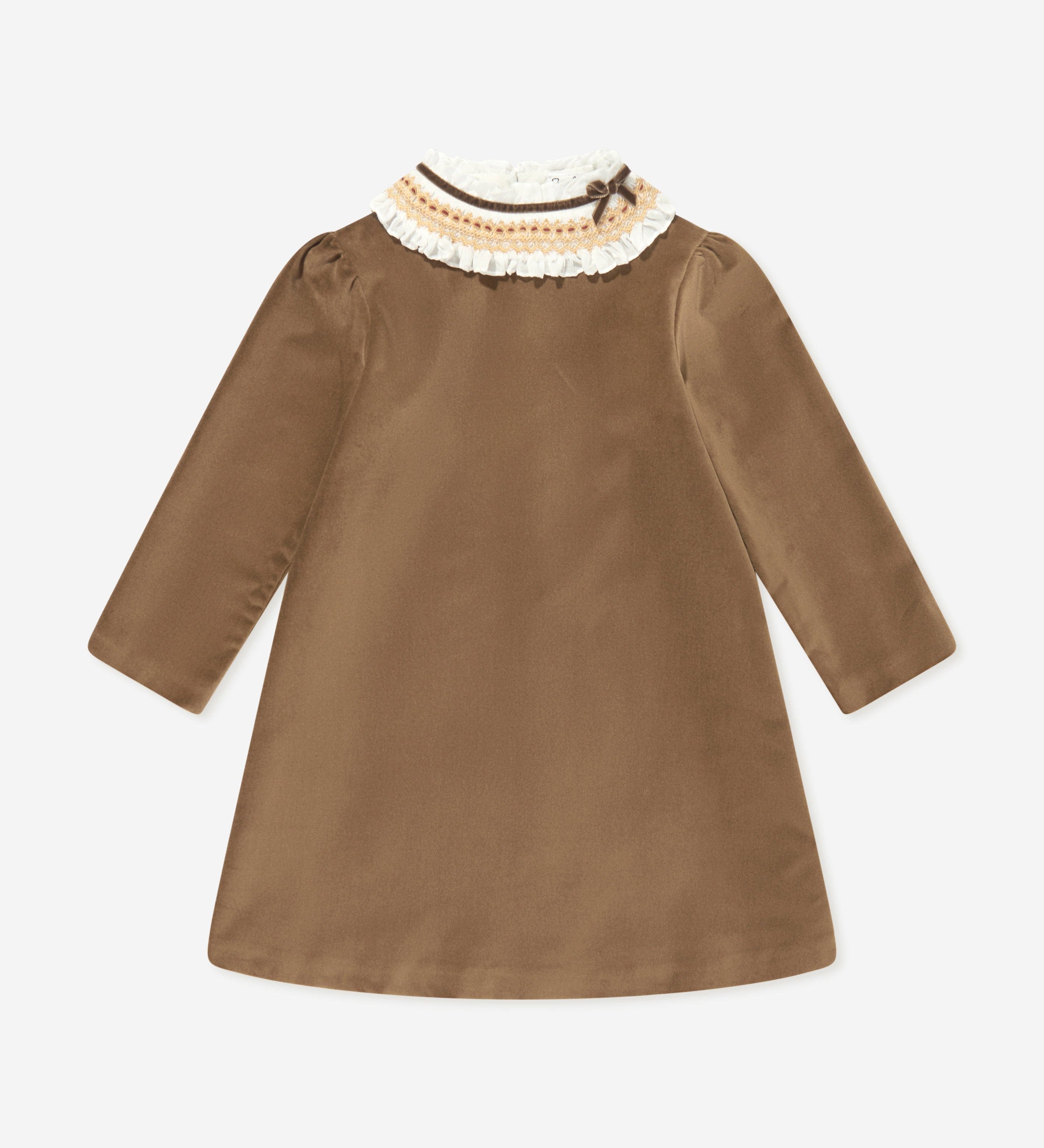 Velvet Dress with Smocked Collar - Gold